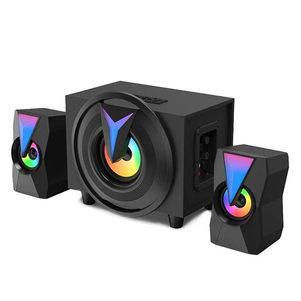 اسپیکر سه تکه FT گزینه ای اقتصادی و کم مصرف و در عین حال زیبا می باشد که با نورپردازی، علاوه بر تامین صدا جلوه خاصی به میز کامپیوتر شما میبخشد. این اسیکر علاوه بر اتصال با سیم به کامپیوتر شما از قابلیت هایی نظیر اتصال بی سیم با بلوتوث و ورودی USB و مموری کارت پشتیبانی میکند و دارای یک عدد ریموت کنترل جهت انجام تنظیمات مختلف نظیر میزان صدا می باشد.
