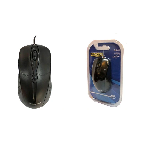 ماوس «MR-41» محصولی از شرکت «MACHER» است که از طریق USB به کامپیوتر متصل میشود. اتصال از طریق USB باعث شده که این ماوس را به راحتی بتوان به هرکامپیوتری متصل کرد. ماوس MR 41 شرکت مچر از سه کلید برای انجام فعالیتهای کامپیوتری تشکیل شده است. کلیدهای این ماوس در برابر ضربات بسیار مقاوم هستند. طراحی ماوس MR_40به گونهای است که هم کاربران راست دست و هم کاربران چپ دست میتوانند از آن بهره ببرند. جنس بدنهی این ماوس از پلاستیک با کیفیت است. ماوس mr-41 شرکت مچر دارای DPI برابر با 1200 DPI است که به یاری آن میتوان با سرعت زیاد اشارهگر ماوس را در صفحه جابهجا کرد. طول کابل ماوس برابر با 1.5 متر است . شرکت macher آن را به یک روکش پلاستیکی تجهیز کرده تا در برابر انواع آسیبها مقاوم باشد.